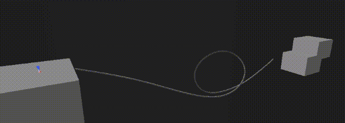If we want to jump directly on a rail, it is also possible. I simply added a Mesh Collider and a Rigidbody to the rail and made it detect player collisions. On collision, a function GetClosestPointInCurve(Vector3 point) returns the t (between 0 and 1) of the closest point on the curve to the collision point. The player’s railProgress is then set to this value.