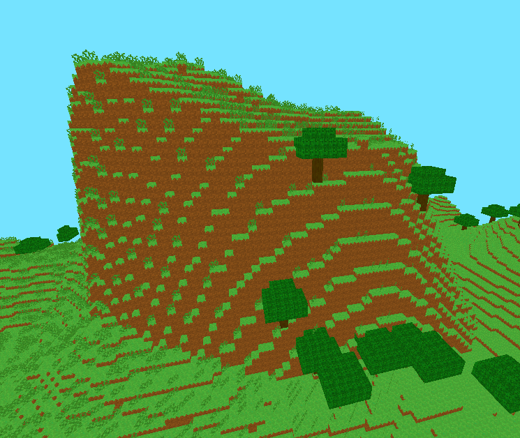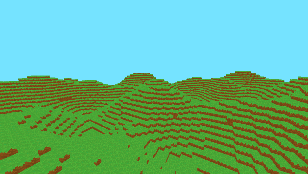 A World::generateChunk(Chunk *c) function fills a chunk’s block data using noises. Here’s a first test: