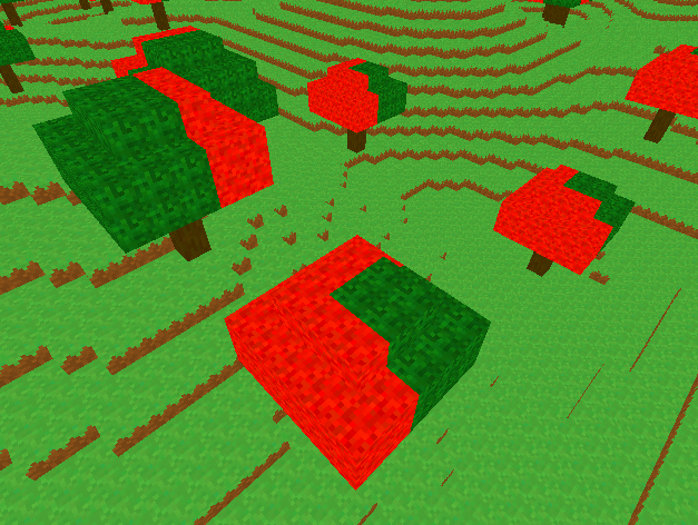We also need to recalculate the neighbouring chunk’s meshes if the broken block was on a border. We can afford baking them all at once since there will be at worst 3 meshes to recalculate. Also, the result has to be instantaneous.
