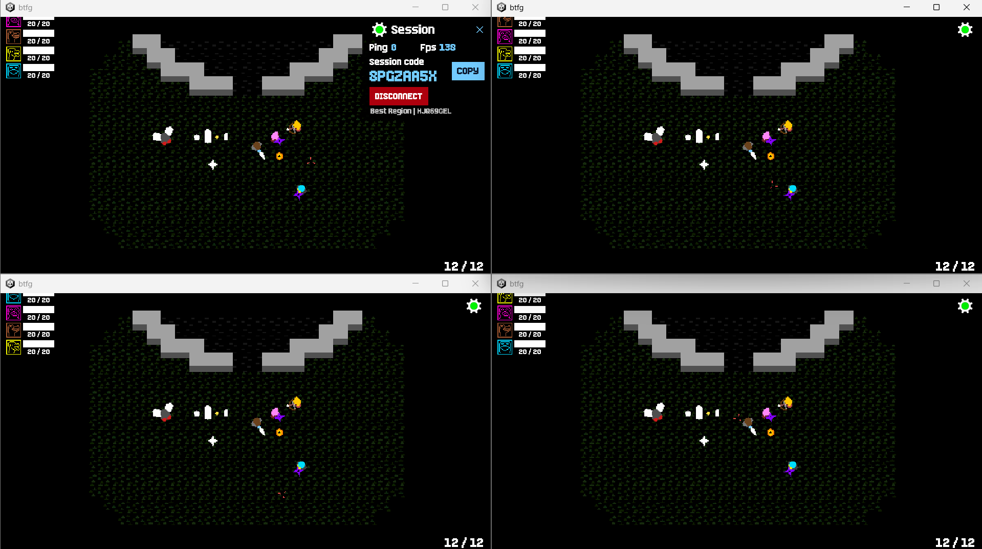 Multiplayer game prototype using the Photon Fusion SDK in Unity (client/host topology). Synchronization of up to 4 players' transform, weapon, armor. Object pooling for bullets. Procedurally generated tower maps using presets made in Magica Voxel. Modeling of game elements in Blender. Low-resolution pixelated rendering.