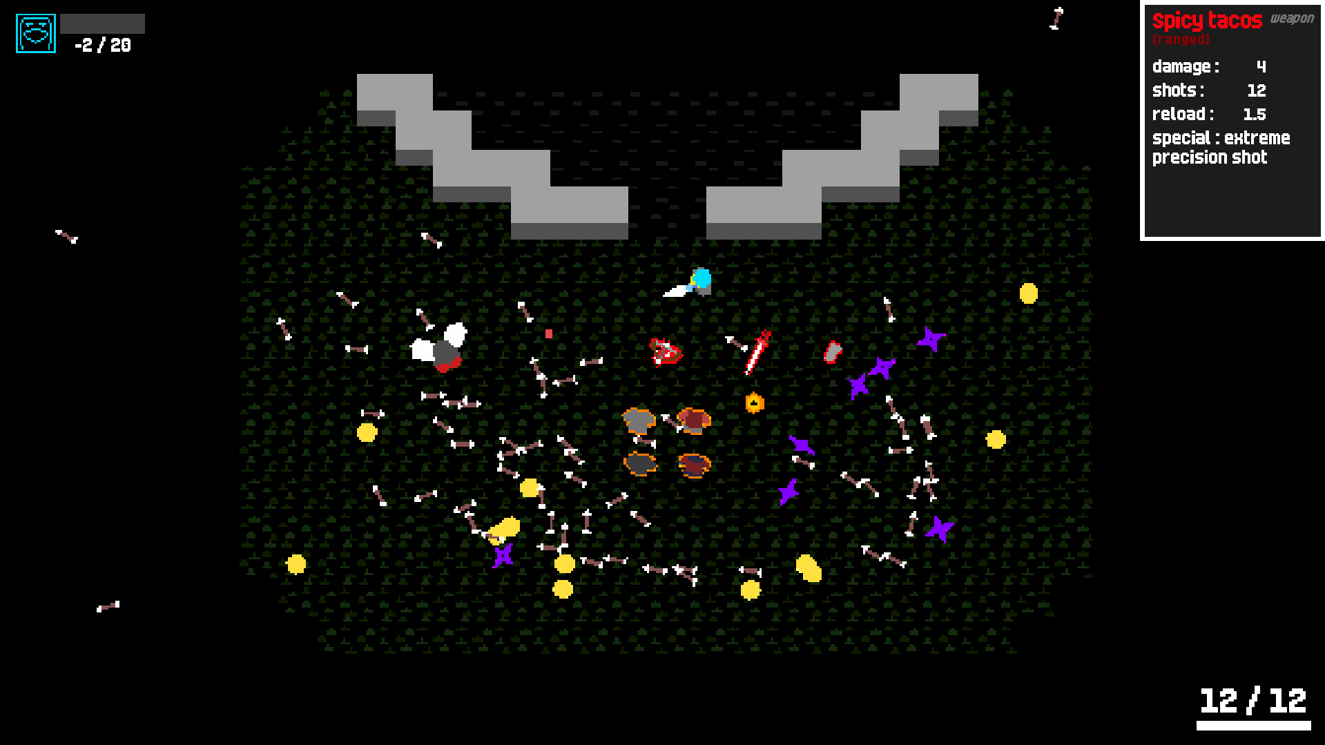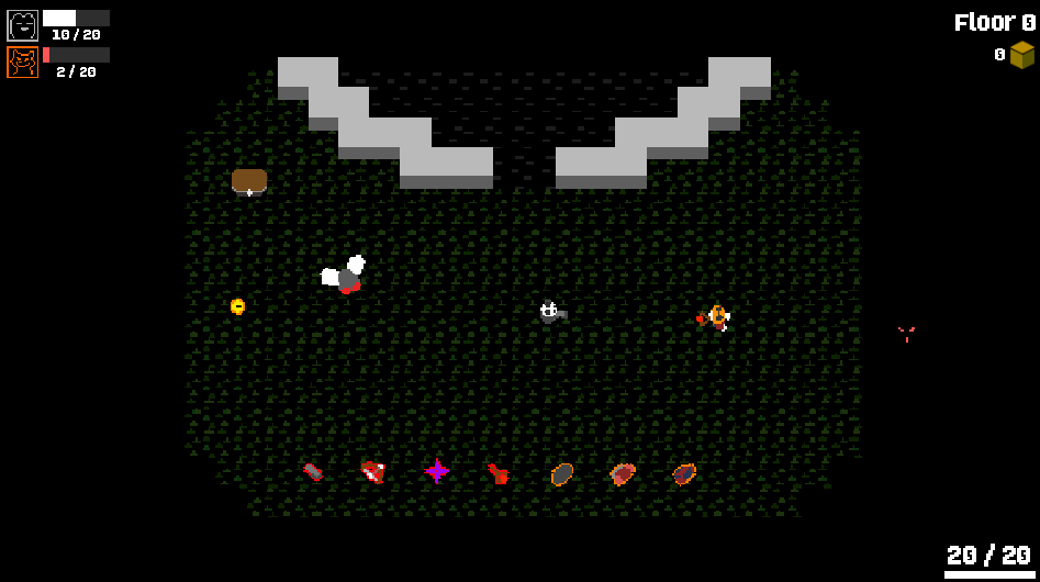 Adventure game made in 1 month. The player controls a cat-like creature that has a sword and a gun.