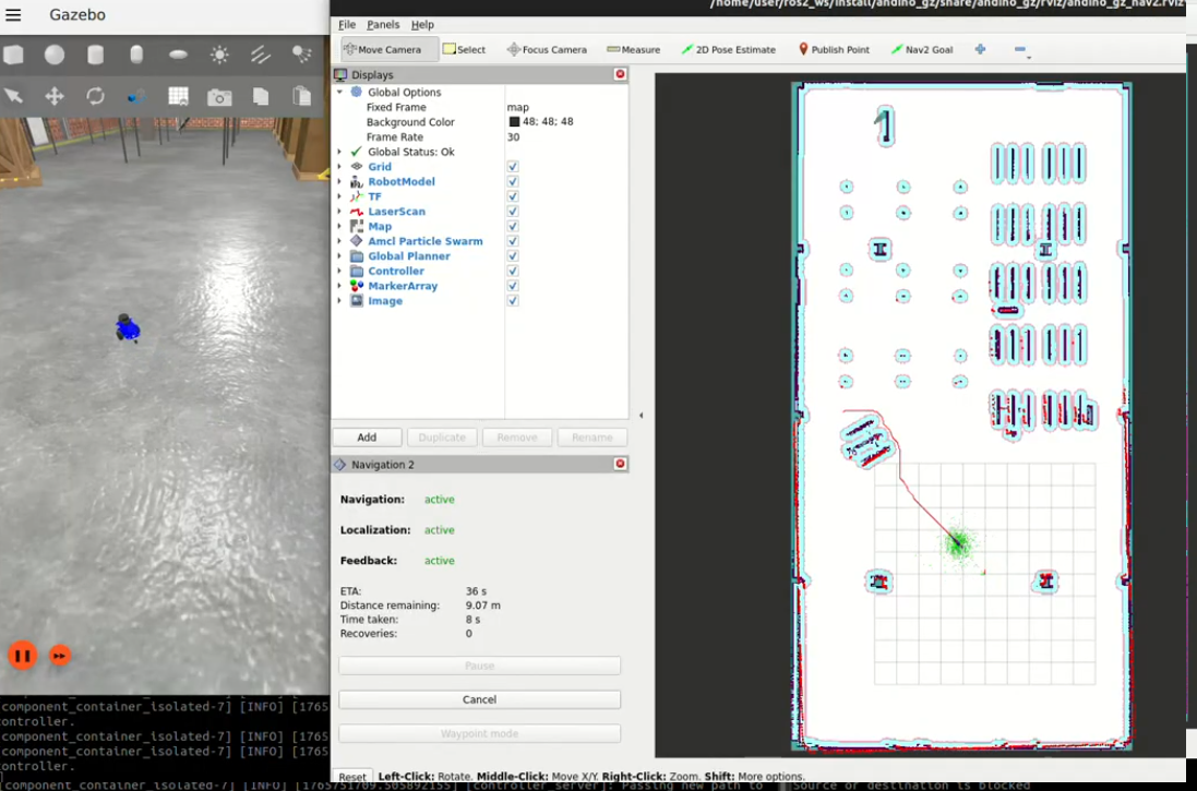 Final project for the Robotics & XR course at UEF, with two other students. ROS2 package implementing the A* algorithm for the navigation of an Andino robot. Usage of the ROS2 Nav2 framework for calculating robot odometry. Visualization in Gazebo.