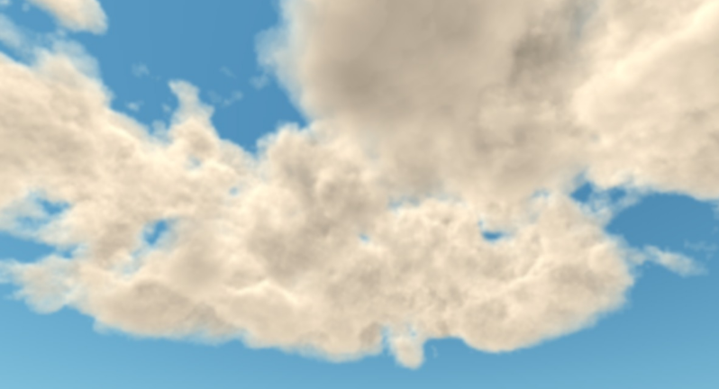 Final project of the Graphics & Visualization course at NTNU. Cloud density sampled using Perlin and Worley noise. Light scattering based on sun position. Rayleigh/Mie scattering for sky color. Bloom post processing effect using a different color buffer. Optimization techniques: rendering the scene at a lower resolution (x0.25), noisy raymarching step sizes, precomputing noises in textures. ImGui parameter window.